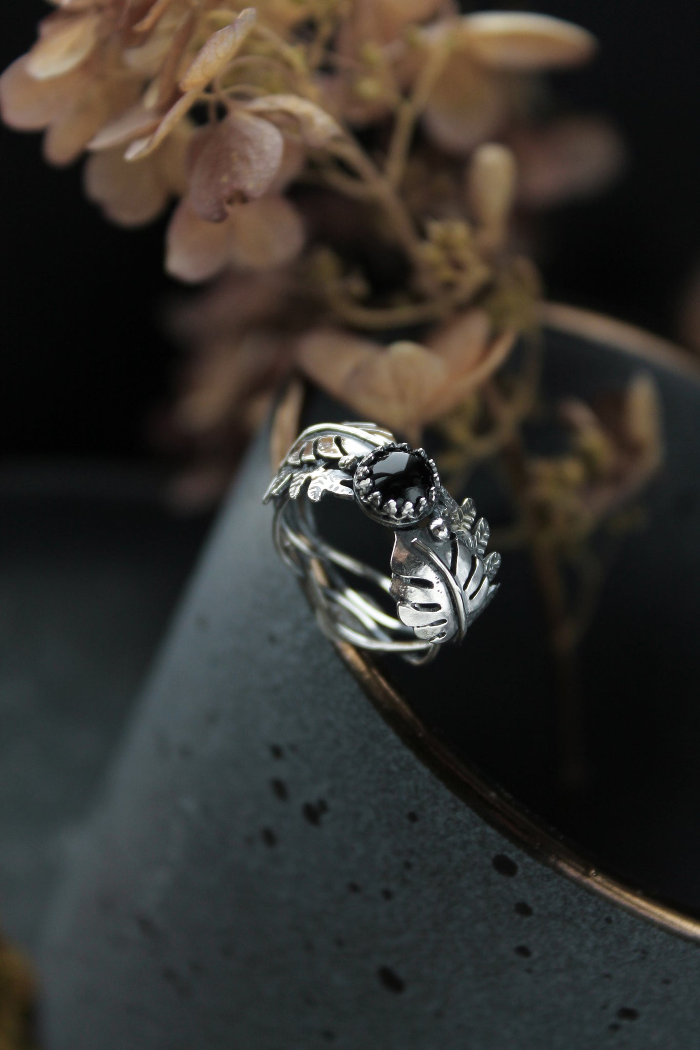 This botanical ring looks simply incredible. On each side of the stone I made silver monstera and fern leaves. They have a detailed texture and look like natural objects. This ring will definitely bring joy to plant and nature lovers.