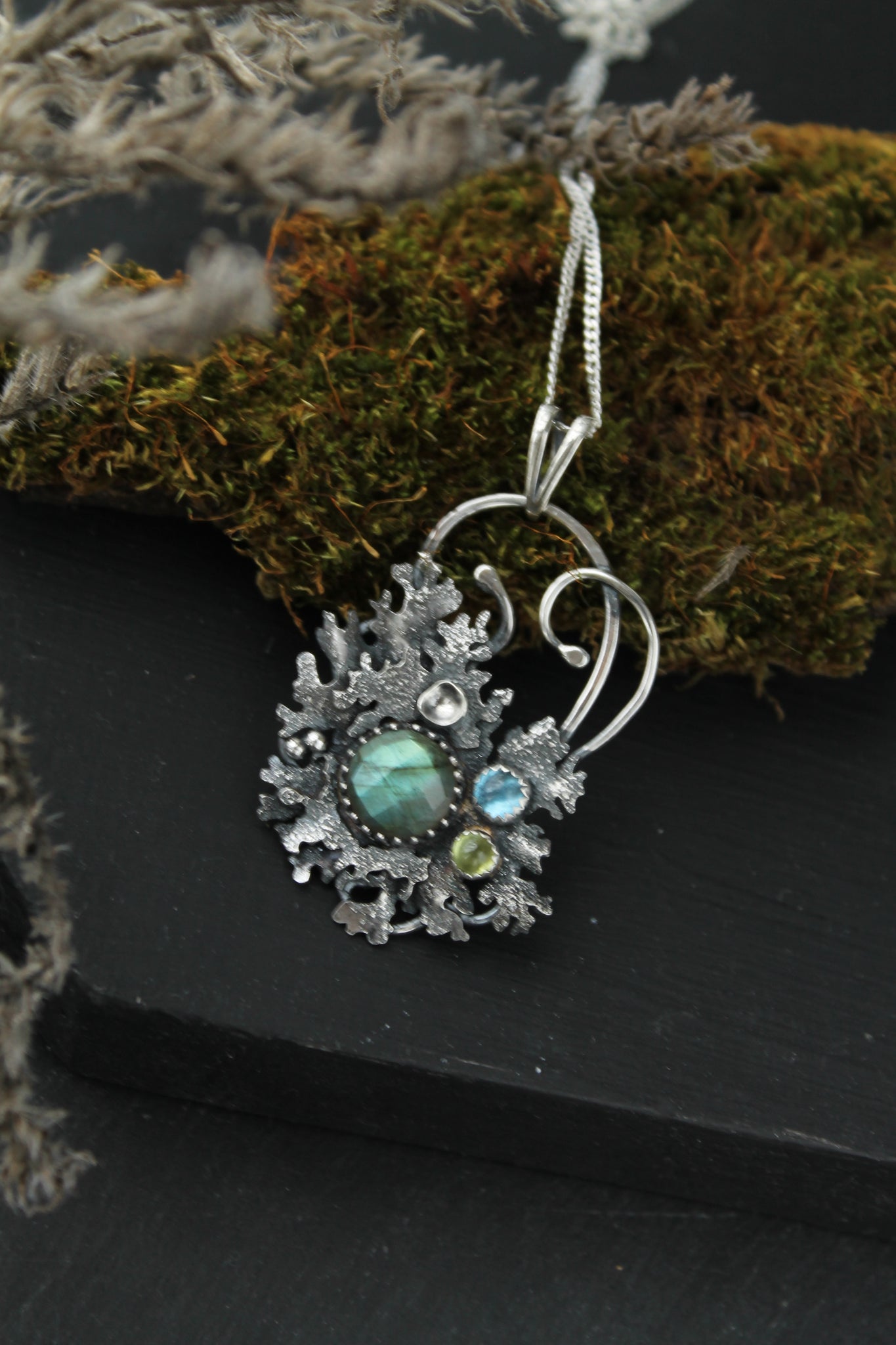 This silver necklace looks like a real piece of moss or lichen. Nature invented it, and I just made it more elegant. Many natural textures and details make this jewelry unique.